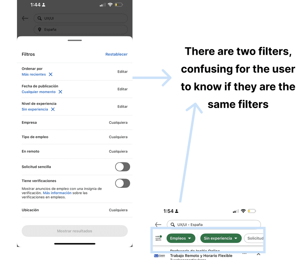 The filter screen had problems with both visibility and consistency. This taught me that UX issues are often interconnected, and good solutions can address multiple heuristics at once.